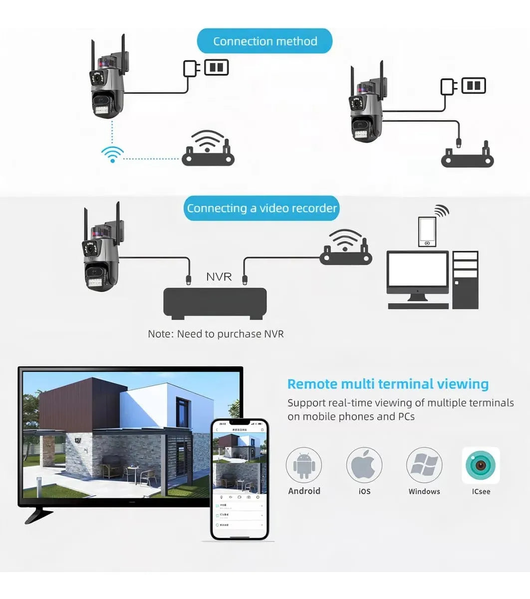 Gracias a su TECNOLOGÍA PTZ (PAN-TILT-ZOOM), puedes controlar el movimiento horizontal y vertical de forma remota desde tu celular, brindando una cobertura de 360°. Su conexión WIFI INALÁMBRICA facilita la instalación sin necesidad de cables extensos, ideal para exteriores e interiores.